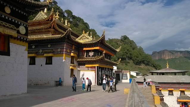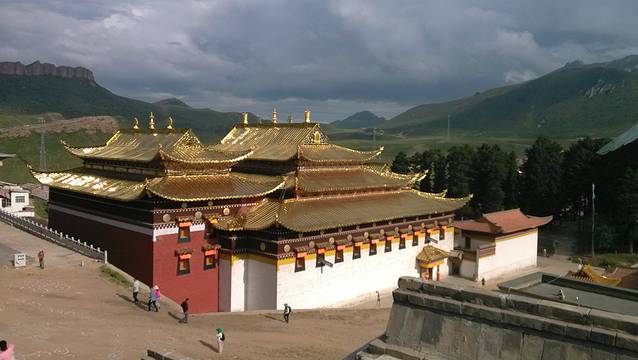 拉卜楞寺,位于甘肃 省甘南藏族自治州 夏河县,是藏传佛教 格鲁派 六大寺院之一,被世界誉为“世界藏学府”。寺院坐北向南,占地总面积86.6万平方米,建筑面积40余万平方米,全寺所有梵宇,均以当地的石、木、土、茴麻为建筑材料,绝少使用金属。整体建筑下宽上窄,近似梯形。