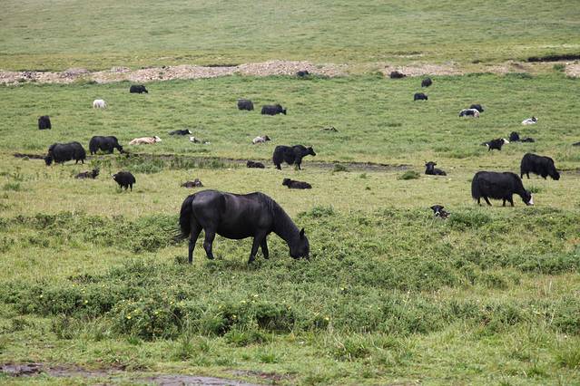 向着玛曲行驶-途中遇到牛群下来拍照,又遇到藏民来要钱