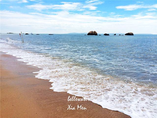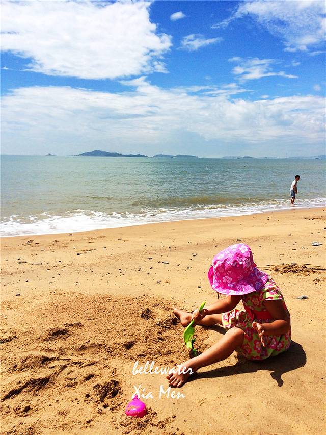 酒店电瓶车去对面沙滩(这一片在环岛路上的名字叫海韵台),挖沙、玩海