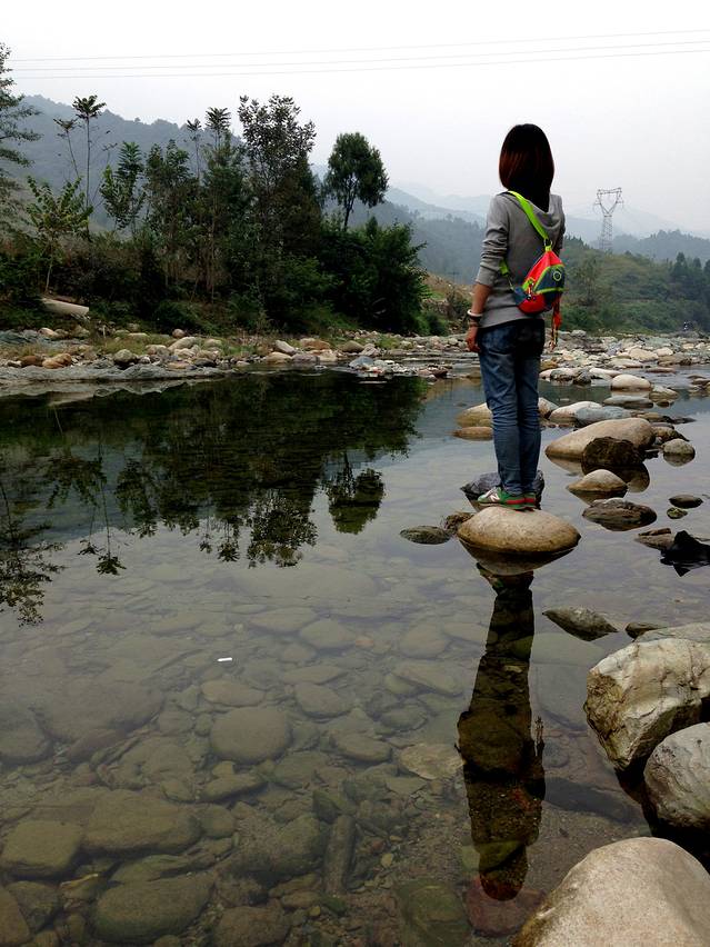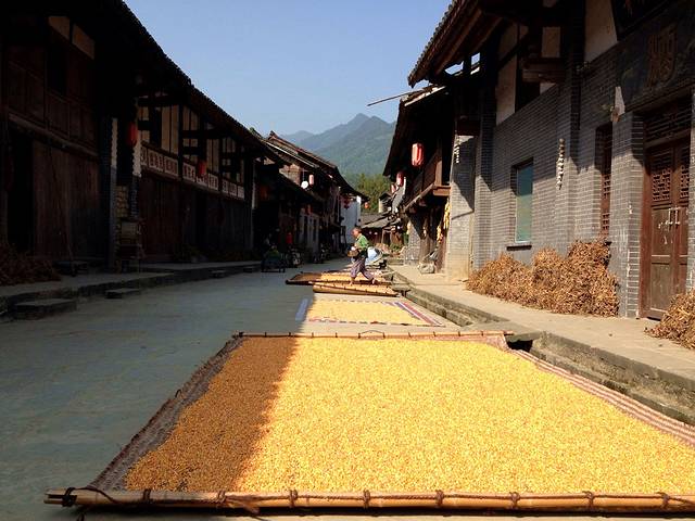 从辅仁中学下来,我们走到了河边,河水清澈见底,鱼儿在水底游泳,远处有妇人在河边洗衣服,小镇的路上有人晒玉米、晒香菇、晒菜籽……午后的太阳洒在身上,暖洋洋,甚是舒服。