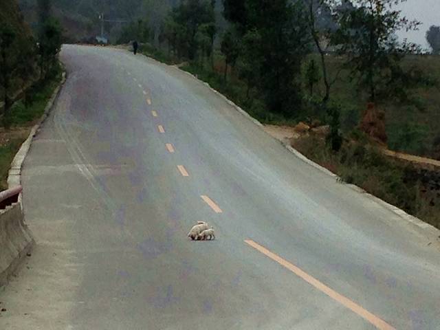 就这样我俩又继续走,这次又走了不久,在一个连续下坡处搭到一辆送水的小卡车,司机是个四川小伙,一个人开车兴许想找人说说话,就搭上了我们,我们和他聊了一会,无奈他也到目的地了,我俩就只好再次下来行走,接下来就走了很久很久,路过了两个村子,都没有再见到一辆车。