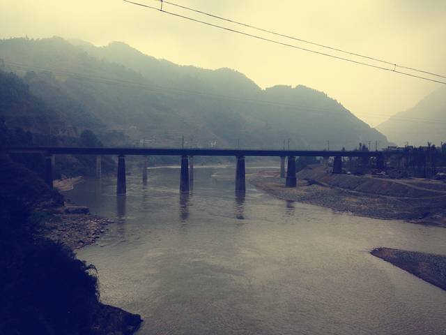 随着火车的行进,嘉陵江出现在铁路之旁,窗外的风景也变得秀丽,襟山带河,美不胜收。