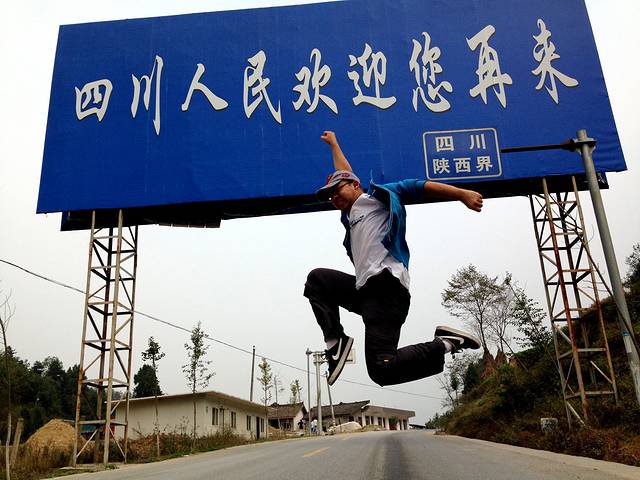路边有稻田、有水牛、有猫猫狗狗,快到四川界时,还有一大片水库,远远的看到:“四川人民欢迎您”的牌子,赶紧快步跑到牌子底下,看那一头,就这么入川了,回头再望,看那一头,以为写着“陕西人民欢迎您”,没想到是“四川人民欢迎您再来”,哈哈哈哈哈,我俩笑的没劲了,赶紧跳起来拍几张照片,纪念一下再次入川~