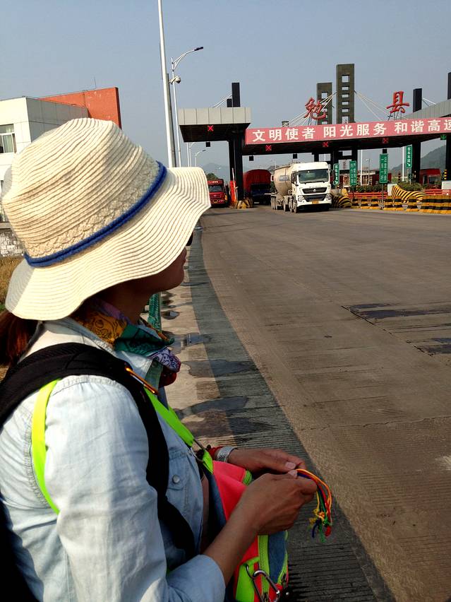 就这样我们一边走一边搭车,正好午后,好热,我们就站在路边搭车,遇到大巴就转过身去,遇到黑车就说谢谢……终于皇天不负有心人,搭到一辆车,我们说去高速路口,他正好去附近,就带上我们啦~到了距离高速口三公里的地方,我们下车了,继续往前走,又一路搭车,接着搭到一辆小车,里面是四川的三个师傅,一车的锅碗瓢盆,是来打工的,准备回四川啦,于是我们拜托他们把我们送到高速口,到了高速口,我们忐忑的往高速路上走,生怕有人拦我们,最终一切顺利,我们就上了勉县高速收费口。
