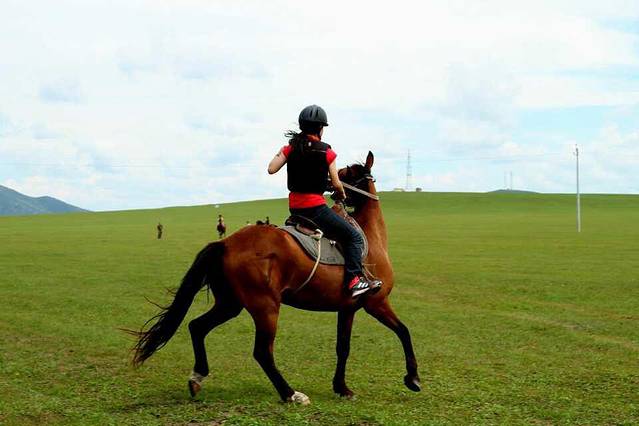 活动的大概内容是先到马场选好自己的马匹接受半天的骑马培训然后第二天大家一起组队骑马拉链到亚洲第一湿地看湿地美景!小李给我们介绍他们马场的马叫三河马,看见它的第一印象就是温驯,和我印象中草原上驰骋的马匹截然相反。