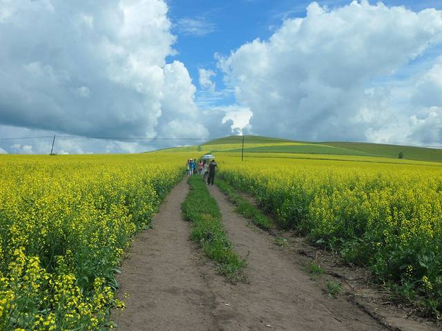 早上我们喝了刚挤出的牛奶,熬好马上就上餐桌的世界上最新鲜的牛奶!吃完早饭后小分队继续出发!今天我向往已久的非常有名气的油菜花地!场景果然震撼人心!给大家上照片!