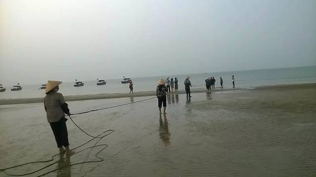 早上的拉船京族女人