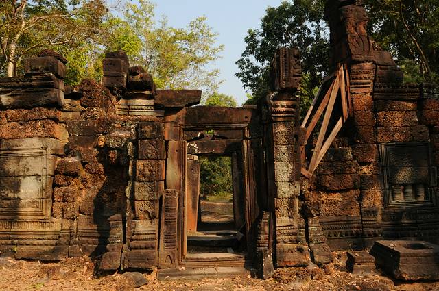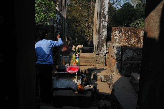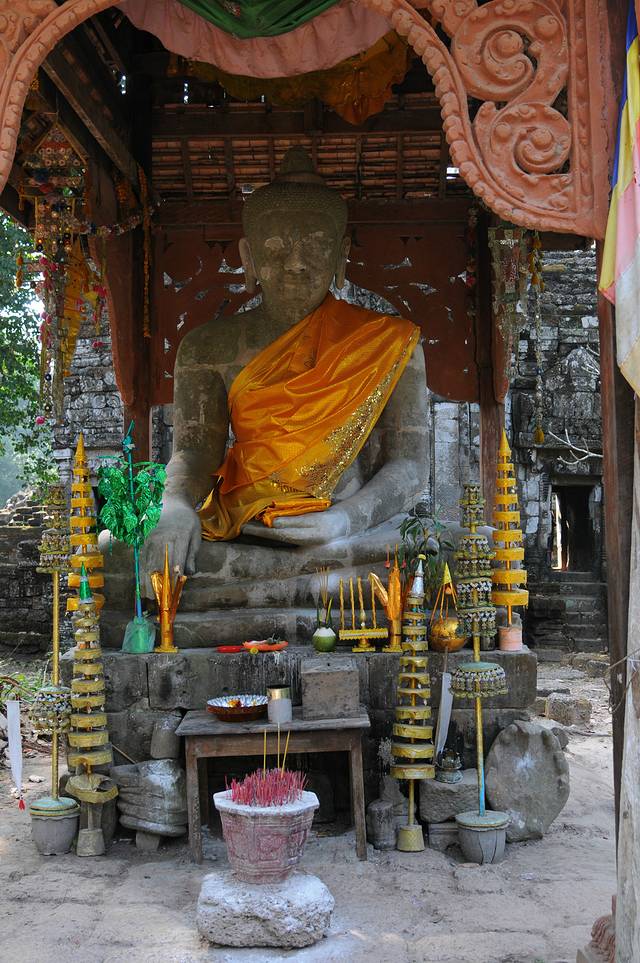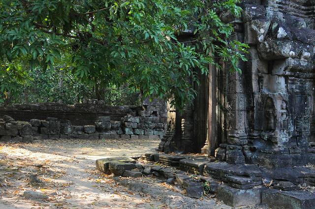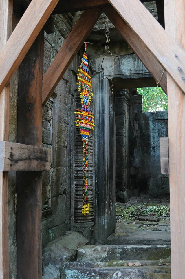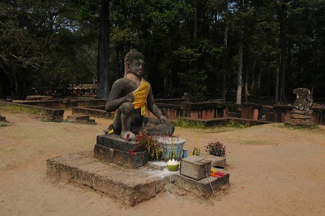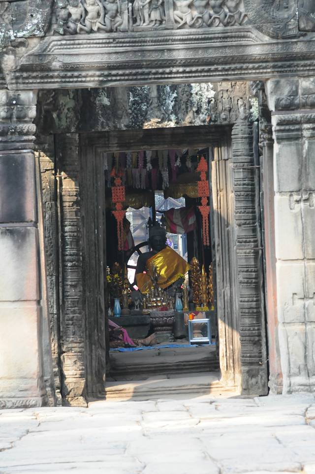 班黛喀蒂寺修复了一些,很多地方还处于废墟状态。这里不是旅游的热门景点,游客不算多。这里原本是印度教寺院,后来闍耶跋摩七世将其改造成了佛教寺院,塔门的内部供奉着后来人们请进去的佛像。