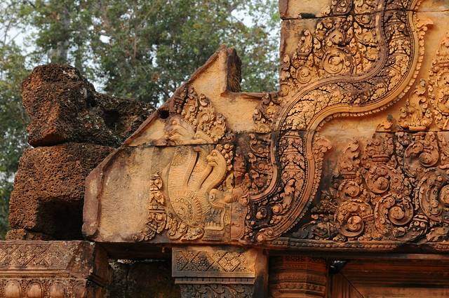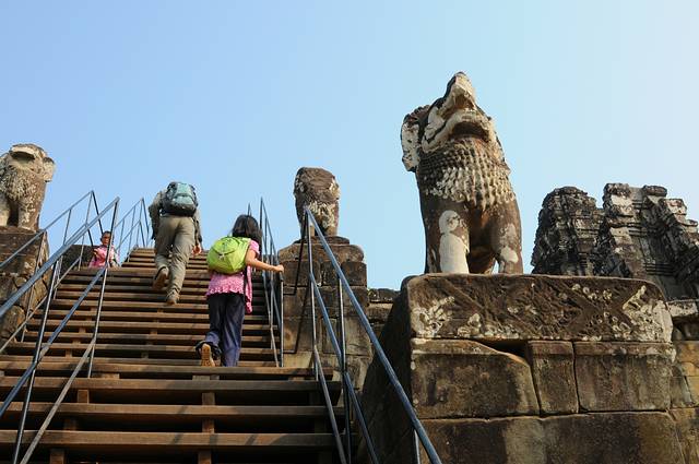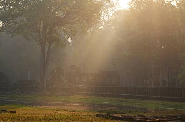 3、关于避开人流:吴哥寺、巴戎寺、塔布笼寺、圣剑寺、女王宫、崩密列是几个最热门的景点,也是旅行团的必去之地。一般旅行团是上午逛巴戎寺,下午逛吴哥寺,中午一般是回旅店休息和吃饭的时间,哪个景点人都不会太多。据我事先读的游记和我自己的观察,吴哥寺早上9:00之前和下午4:00之后是游客相对比较少的两个时间段。巴戎寺上午8:30之前大批旅行团未到时和下午人少一些。而且这两个地方是值得一去再去的,早上和晚上感觉也不一样,最好安排不同的时间段参观。我自己就去了四次吴哥寺,两次上午两次下午,两次巴戎寺,分别是上下午。塔布笼寺和女王宫都要一早去,最好7:00左右到,尤其是女王宫,一则是因为日出时阳光比较暖,照在女王宫上红艳艳的色彩靓丽,再则早上游人少,管理人员可能会跟你要2刀允许你去参观中心区,他们挣些外快,但绝对物超所值。游客多了他们管理的就严了。崩密列和圣剑寺我都是差不多中午去的,游客都不多。圣剑寺中午去有些晒,崩密列什么时候去都不会太热。