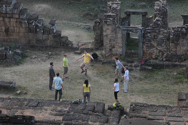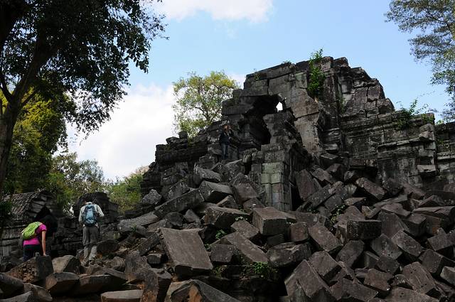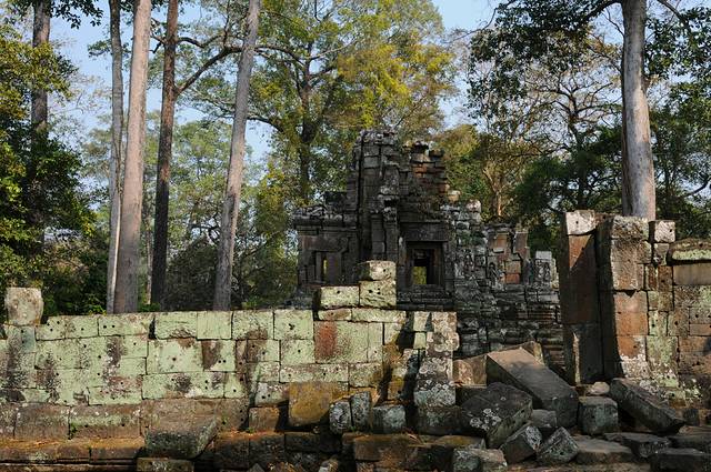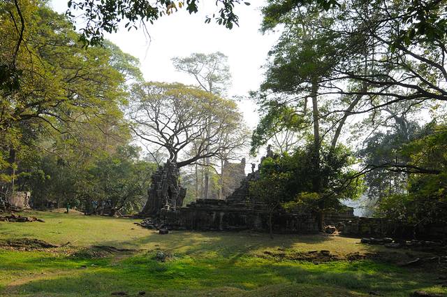 托玛侬神庙和周萨神庙我们一共用了50分钟。接下来的目的地就是大吴哥内的圣皮度寺和圣琶丽寺了。从周萨神庙到圣皮度寺大约要骑20多分钟。 2:20到了圣皮度寺,我们发现刚才在周萨神庙录音时,娟娟把录音笔丢到那里了。于是月民带娟娟去找录音笔,我先逛圣皮度寺。