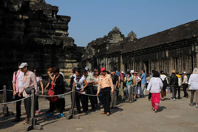 1、 都说吴哥景区查票严,逃票罚得很重。但是我们发现,他们的管理还是很人性化的,至少不是像某些国内景区故意找茬。今天我们到了塔布笼寺检票时才发现票丢了,检票员也没一定要认定我们逃票。景区内很多工作人员还热心的帮我们找票,最后找到了两张票,只收了我们一个送票的突突车费3刀,实在让我们感动。