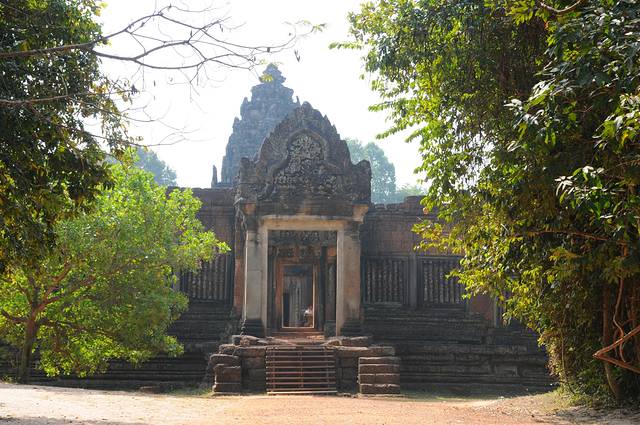 班黛喀蒂寺离塔布笼寺西门很近,骑车也就十分钟左右。班黛喀蒂寺也是闍耶跋摩七世建立的寺院,塔门是人面塔造型,很有闍耶跋摩七世时期建筑的风格。