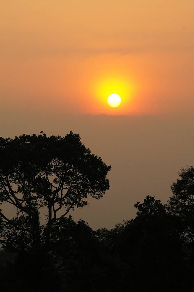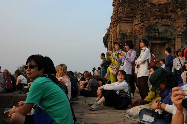 2、关于日落:巴肯山自然也是最经典的位置,但是我放弃了,原因是旺季人太多,影响心情。比粒寺和洞里萨湖旁边的格罗姆寺(也有人叫科荣寺)也是很不错的看日落地点。我个人比较喜欢格罗姆寺,太阳是从洞里萨湖上落下,水天一色比较漂亮,而且非常清静,人很少。巴肯山和比粒寺都是落到树林里,色彩差一些。比粒寺最好也是4:00左右到,参观完差不多5:00左右,就坐在西边平台边上(一定在最高的平台边上,恐高的除外)等日落,1月底的时候,我看日落的时候天边都有云,太阳落山大约是5:50,5:20左右就可以开始照相了。很快背后就会聚集起里三层外三层的人。