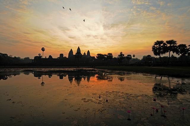 1、关于日出:最经典的自然是吴哥寺前的水池,1月份是面对吴哥寺,左边的水池偏左是最佳位置。到的时间要不就是早去,赶在5:00之前(比如4:40)到,抢水池前面的位置。或者索性6:00多快日出了再去,反正也抢不到最前面的位置还不如多睡会儿。据我的观察和看别人的游记,吴哥寺的日出一般都有云,太阳可能要快7:00才真正出来,而这时看日出的人已经陆陆续续散去,找一个适合照相的位置并不困难。