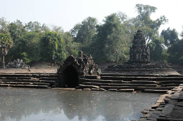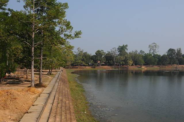 皇家浴池就在班黛喀蒂寺对面,是一个小型的人工湖,原本是国王沐浴的水池。这是一个看日出的好地方,白天却没什么特色。皇家浴池建于10世纪中期,由罗贞陀罗跋摩一世初建,12世纪末由闍耶跋摩七世改建。