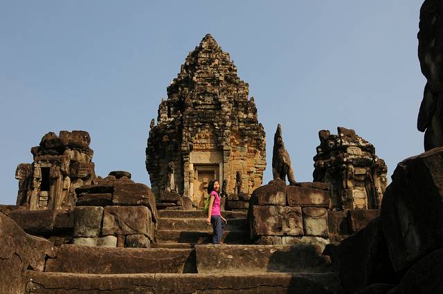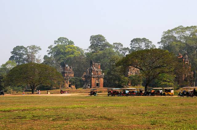 5、除了上面几个必去之地外,其他的景点也是各有特色,我觉得不可错过的还有罗洛士群、巴方寺、班提色玛寺、班黛喀蒂寺、达松将军庙。豆蔻寺是唯一一个五塔排成一线的寺院,砖雕也很漂亮。周萨神庙和茶胶寺好歹是我国援助修复的,怎么也得看一个吧!我觉得周萨神庙比较好。托玛侬神庙和周萨神庙风格很像,但前者是法国修复的,两个比较一下也挺有意思的。