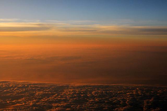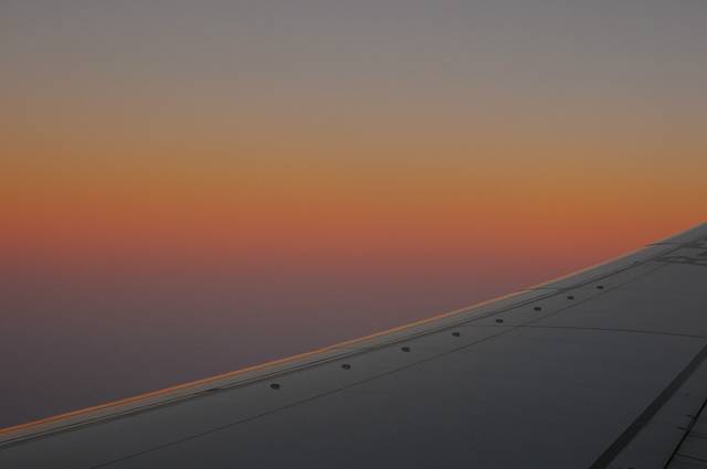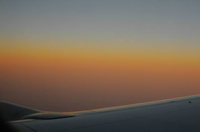 2:50我们入关等飞机,稍微有些晚点,不到1个小时,正好在飞机上看了日落。夕阳中还看到远处一架飞机飞过。7:00多到了昆明机场,不巧的是正好错过了租车取车的时间,只好明天再说了。