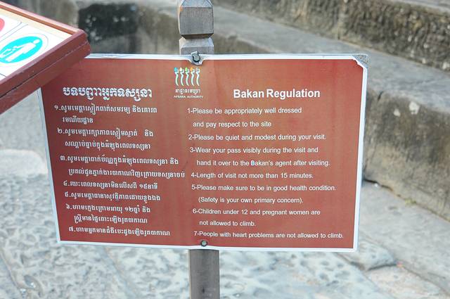 13、 吴哥寺是印度教圣地,对着装有要求。不能穿露肩、露膝的衣服参观。而且上第三层的木质楼梯非常陡,不要穿裙子谨防走光。