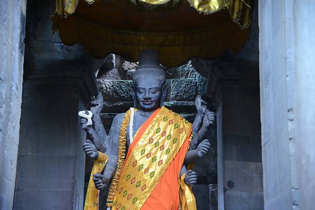 西塔门宽230米,由三座塔楼组成。两侧的塔门也称为象门,以前这里可以供车辆和大象出入。南塔下方的神龛里头有一尊八臂毗湿奴神像
