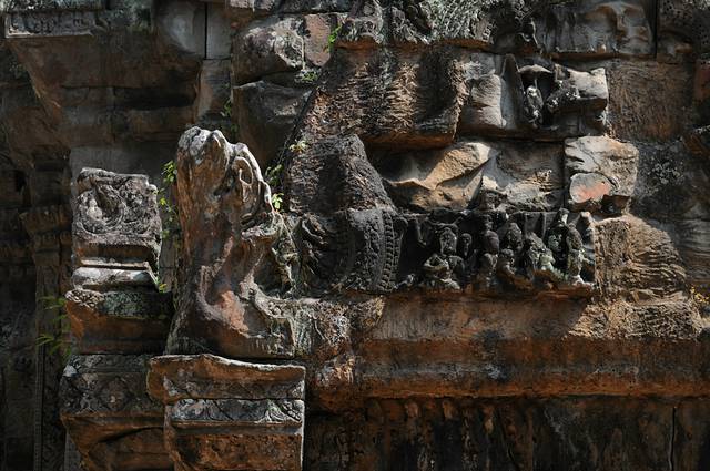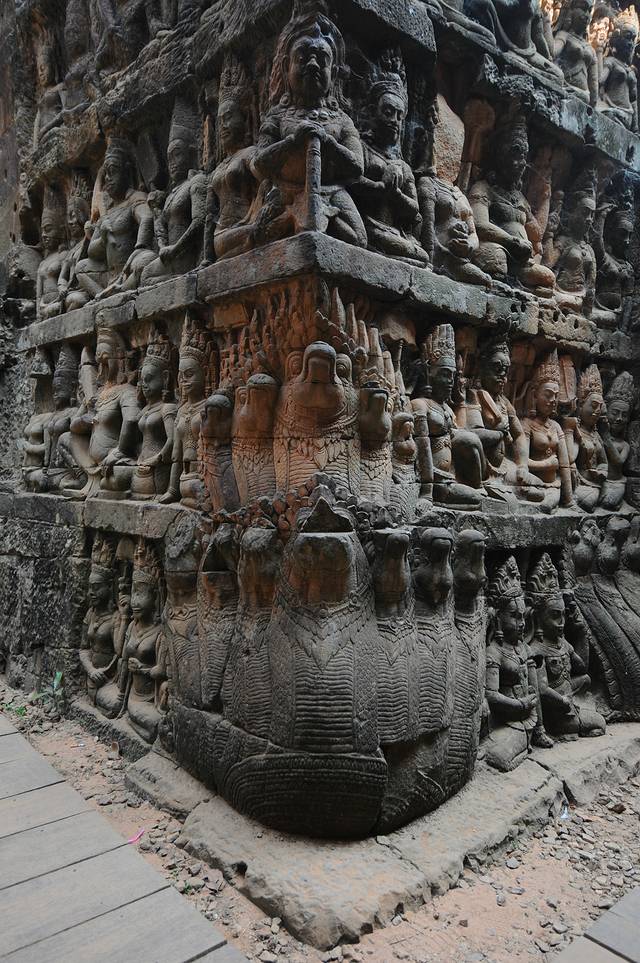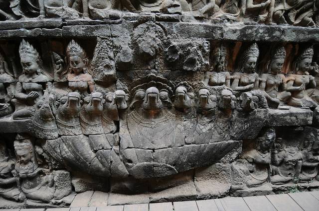 2、 隐蔽通道内的雕刻,尤其是保存完好的九头那伽的雕刻。