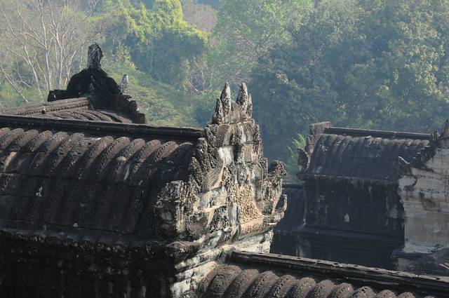 4、 吴哥寺的三层建筑结构,雕刻都跟下面差不多。但是登高远望比较有气势,有机会应当上去参观。三层不是每天都开放,参观也有时间限制,一般是8:00~17:00 。