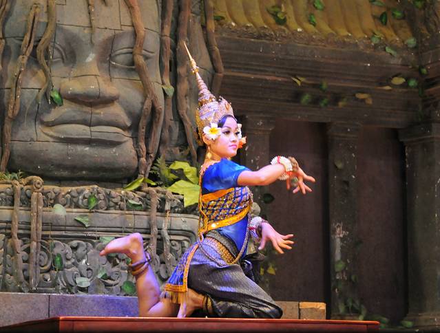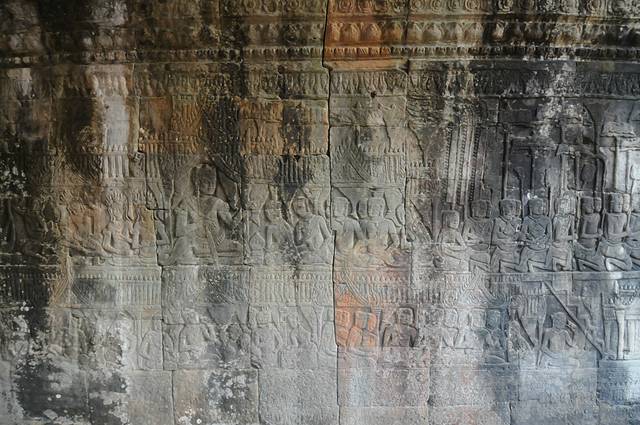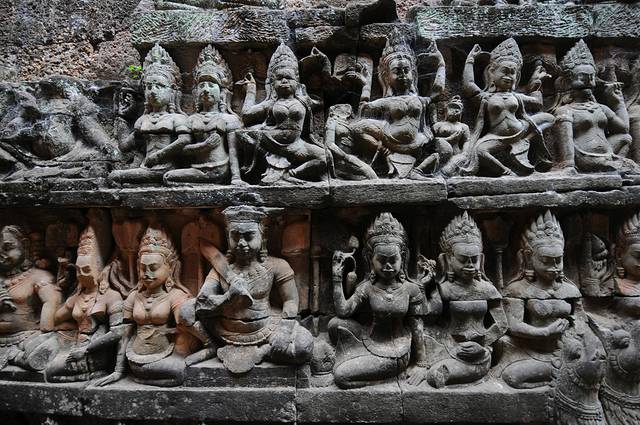 2、 东侧中围和內围之间有一个跳舞大厅,平台上建筑的门楣上雕刻着很多跳舞的阿帕撒拉像。柱子上也有很多阿帕撒拉舞蹈的浅浮雕,造型优美。