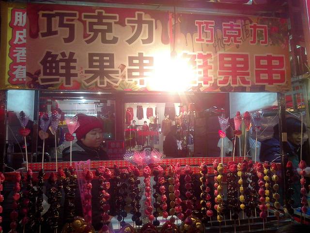 晚上逛了老城区,好多吃的巧克力鲜果串