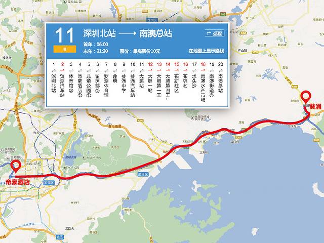 我去大鹏一般都是坐E11公交车,分段售票,全程10元,可以刷卡也可以现金。