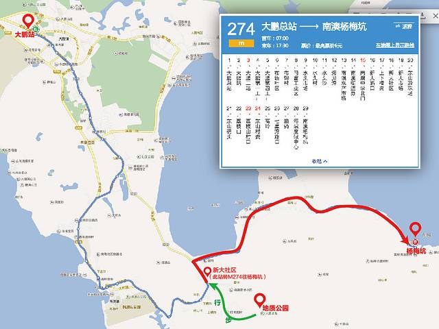 到大鹏总站后,再换乘B756路公交车到大鹏所城站下车,这里提醒一下大家,这路车不是在大鹏总站里面上车,而是在总站马路对面的一个站台。