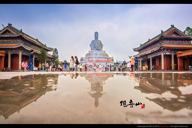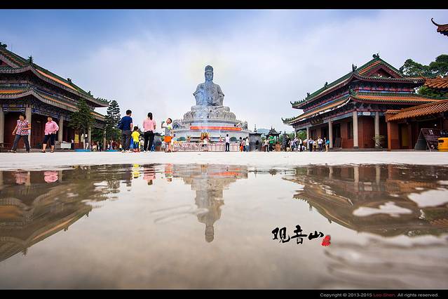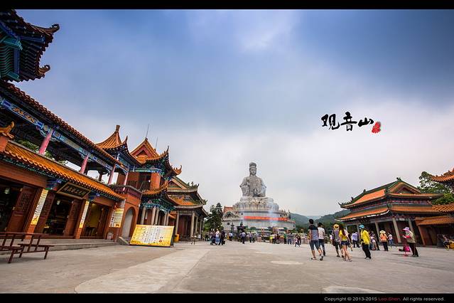 广东观音山国家森林公园是国家林业局批准成立的全国首家民营国家级森林公园,位于东莞市樟木头镇境内,园区总面积18平方公里,森林覆盖率达99%以上,相传,观音山为大慈大悲观世音菩萨初入中土时首处停留之所,其山顶观音古寺,始建于盛唐,古寺因有观音菩萨幻化三十六法身之说,故千百年来,青灯不熄,香火不断…… 观音山国家森林公园建成时,择极具灵气的花岗岩,靠人工雕琢,历时三载,终请成净高三十三米、重达三千多吨的世界最大花岗岩观世音菩萨圣像,是不可多得的极具盛唐风采的石雕艺术精品。