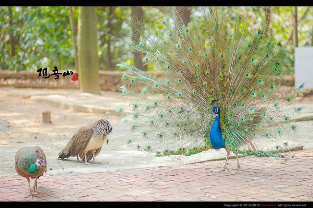 如果在动物园想要看到孔雀开屏实属不易,但是来到观音山你就有眼福了!