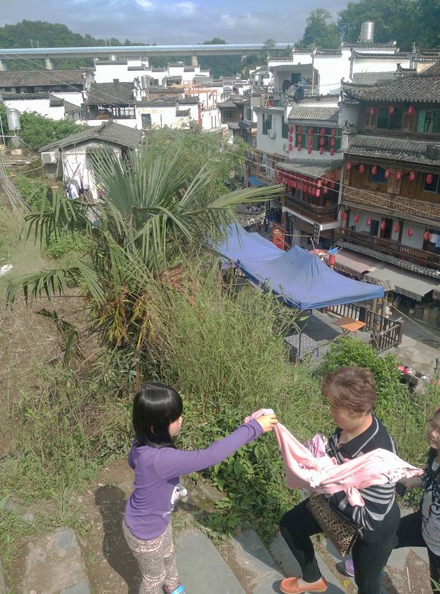 彩虹桥必须看啊,惯例停车费,但是它为啥要我10元钱呢,没办法,必须给,幸好后面的景点都是5元钱。下车后有个集市,好多的小工艺品,正好景德镇没时间买,这里瓷器挺多,就买了几个小风铃,女儿的小哨子,还有瓷器口琴,樟木手链等,后来证明没有买错,这里是最便宜的了,后面的景点尤其李坑简直就是坑你,贵的要死。还有小野草莓,也很好吃,1元一串。