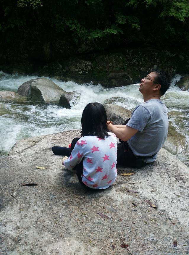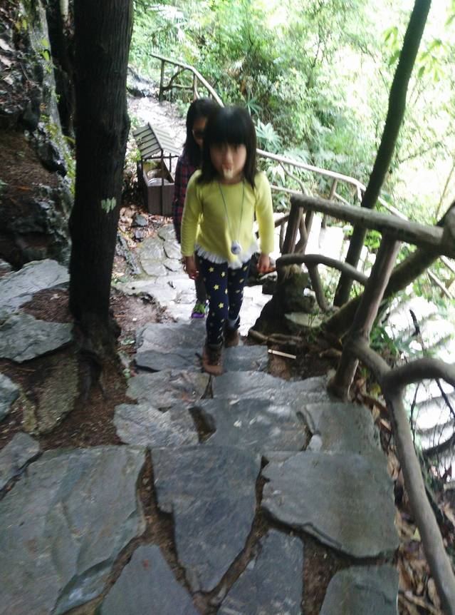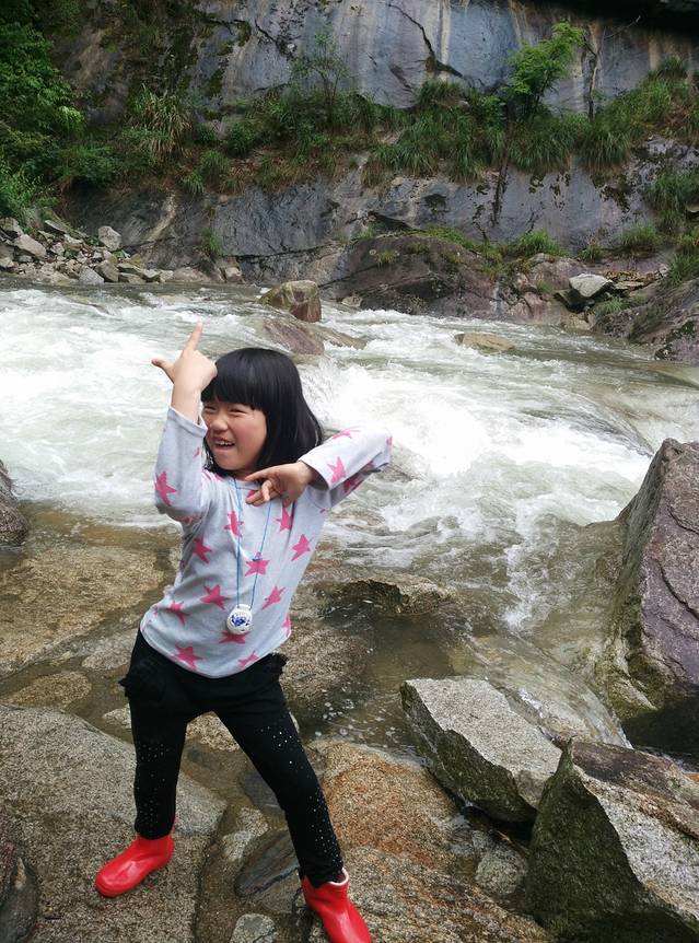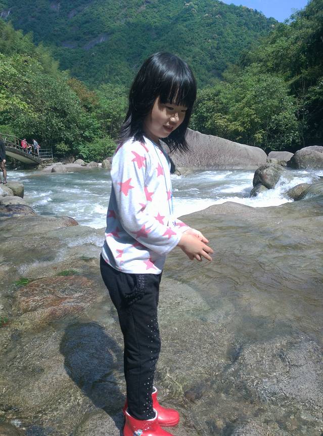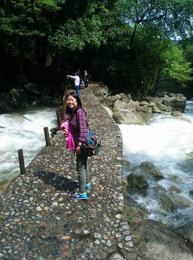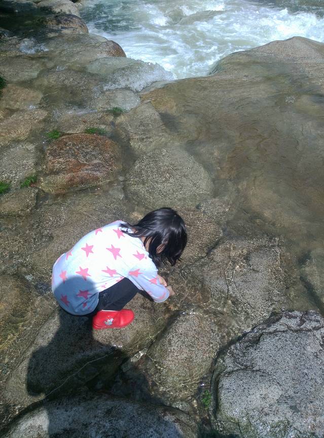 对面这个石头桥有意思,水很清可以看到好多鱼,可惜抓不到。后面的人有点怕,总催我们快点走,要是有2条路就好了,可以在水中慢慢玩。