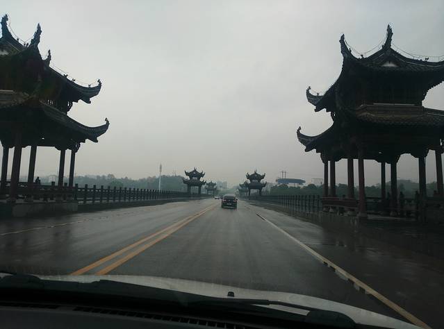 早上6点起床,在上高速前的一段路边一个馄饨点吃的早餐,3元一碗,味道清淡很好吃。一路高速畅通,景色还很不错,尤其有个高速桥全长近10公里,太壮观了。