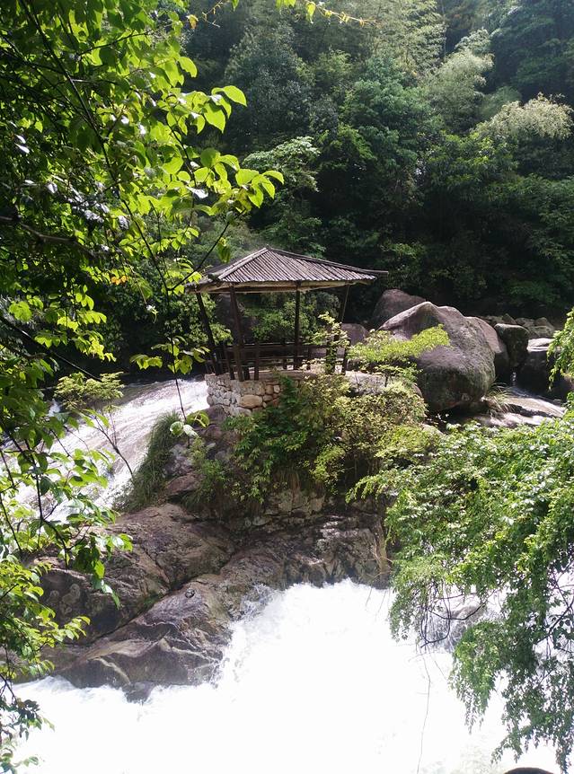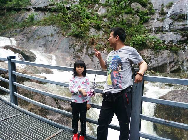 从彩虹桥到卧龙谷有20多公里,中午在清华镇吃了午饭,味道不好,价格还贵,选的还是人多的店子,看来不是这个店子不行,是本地人炒菜水品的问题啊。刚到卧龙谷瓢泼大雨,进了景区走一段路就到了索道站,索道50元一人,小孩半票,老人全票。这个索道很超值啊,速度慢可以沿途看风景,而且距离还比较长,下了索道就是一个超美的绝壁飞瀑,一看导游图上面景点只有2个瀑布就没往上走,直接走下山一路看风景了。这个山路还不陡,一路边走边看轻轻松松就下山了,感觉很好啊,这个季节雨多看水很美,很有气势。