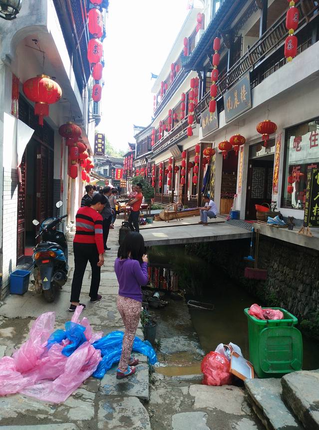这是老房子,必须的,这里老房子门口都有个水缸,里面有个碗,说如果你能丢到碗里就是运气好,女儿可喜欢这个,见到缸就要丢,我看看缸里就几个硬币还新的很,看来老板晚上都收钱的啊,这不是保佑你,是保佑老板的。