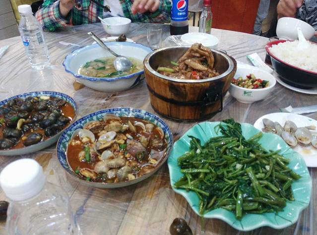 花甲、萝卜皮、老汤鸭味道都不错,田螺大了点,没入味。本地的粑是特色,可惜不符合我们的口味,看着都没兴趣。