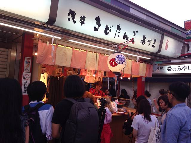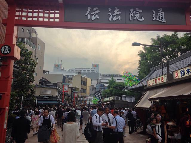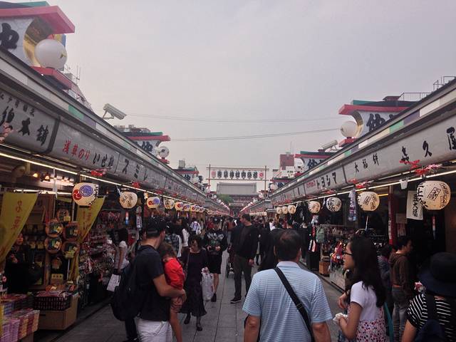 就在地铁出口附近,可惜灯笼收起来了,等到晚上都没放下来,背后就是最多人热闹的吃吃买买街!前面的十字路口还可以看到Sky Tree噢!
