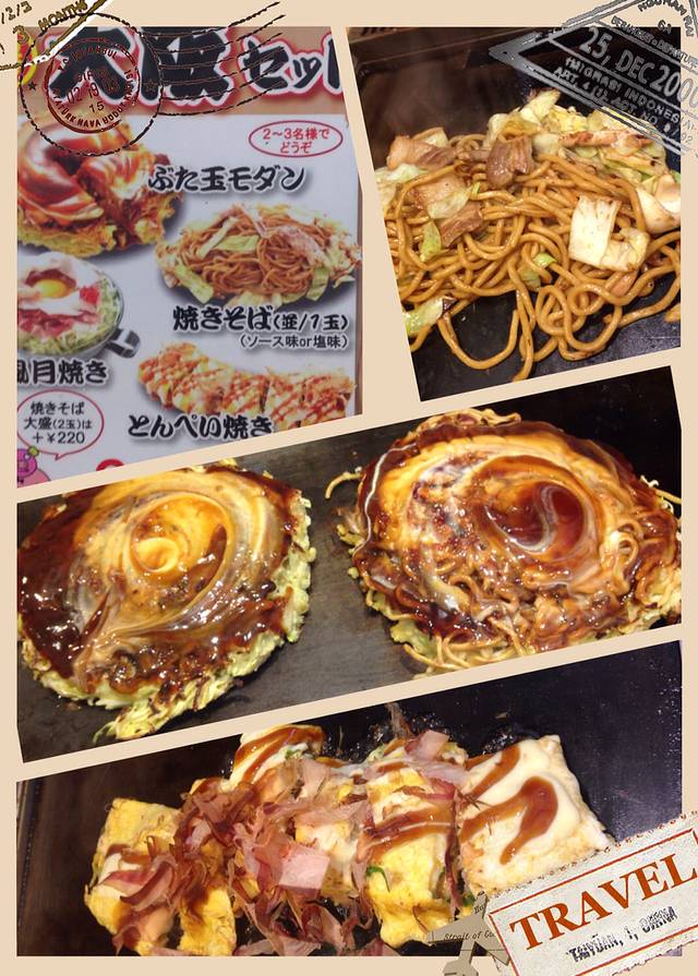 非常多吃的,去鹤桥风月吃了大阪烧系列,感觉还不错。其他也有很多吃的,基本上真的整条街都是吃的~