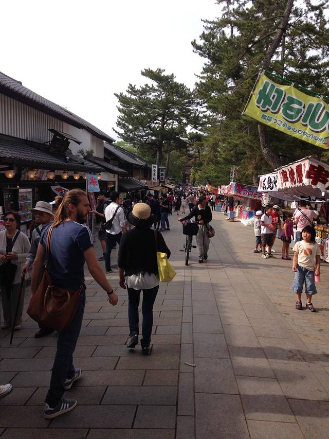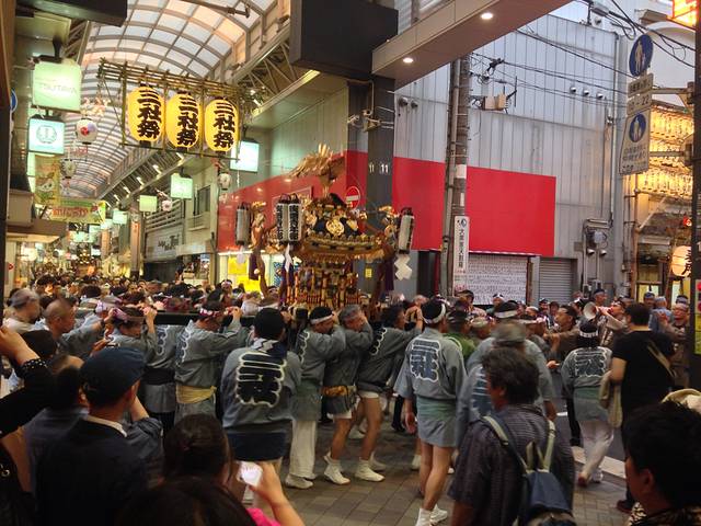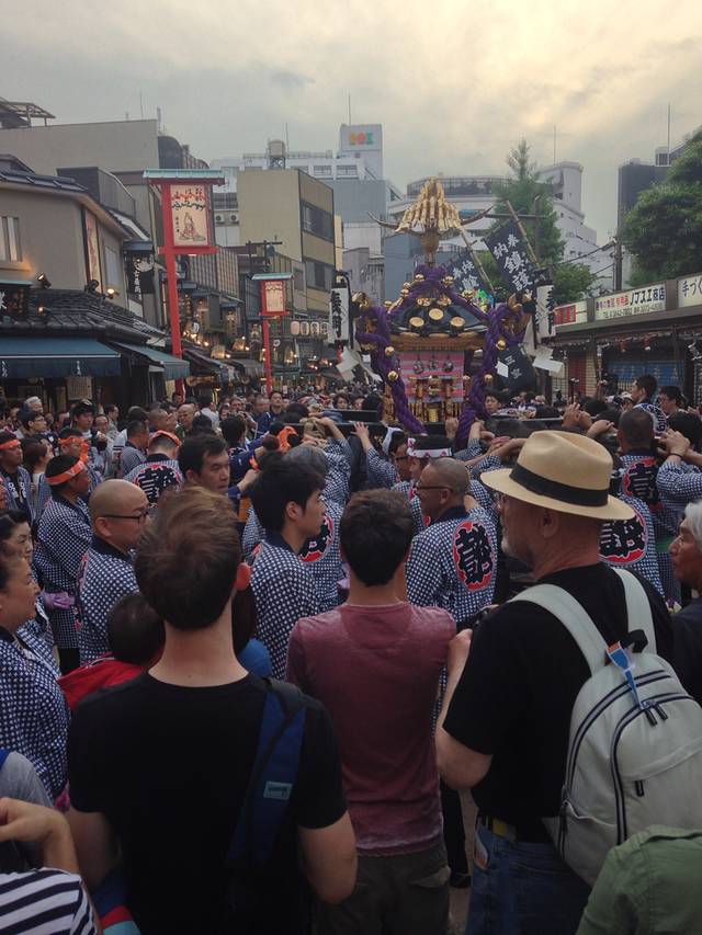 这里好热闹的,人形烧、煎饼、SaKe冰淇淋、日本炸鸡、章鱼烧…吃吃吃!~还遇到了三社祭!真的是热闹啊~