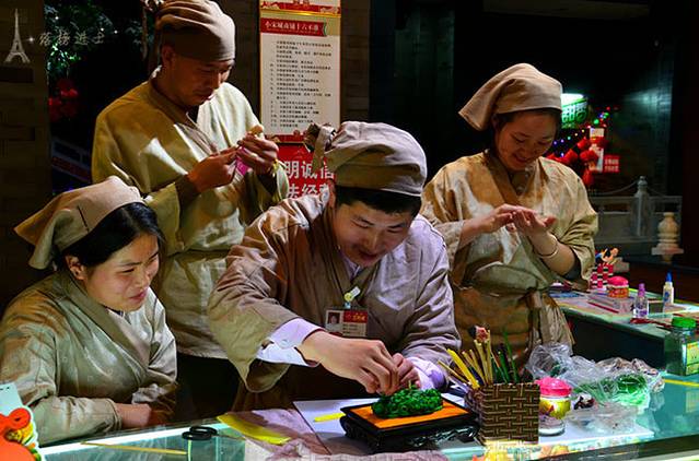 小宋城里面的服务员都是穿的店小二的衣服,游客来到这里仿佛穿越了时空走进了北宋。