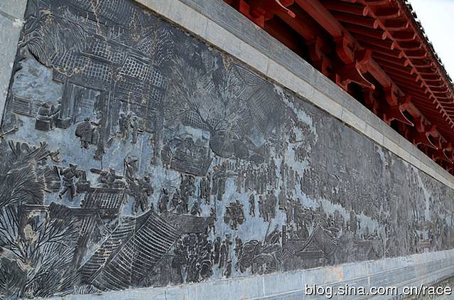 走进大门,绕过一座前有张择端站像、后有清明上河图传奇故事浮雕的影壁,便是公园的主题广场。