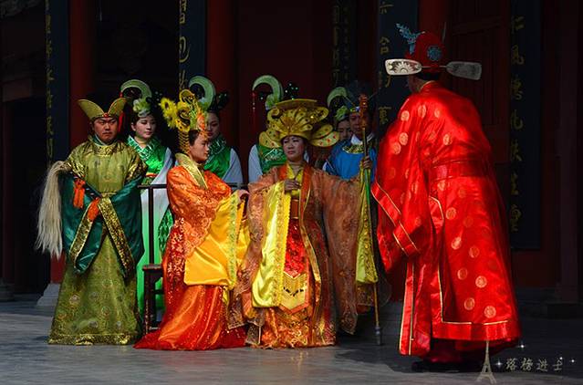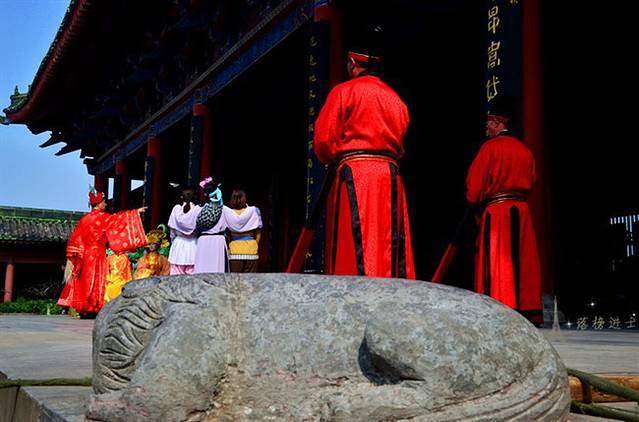这里在上演“铡美案”吸引了很多游客的观看。开封府坚持动静结合,雅俗共赏,历史与演义相映成趣的经营理念在开封府,您除了能够看到大批珍贵史料,轶事和陈展外,还能够看到“开衙仪式”、“包公断案”、“演武场迎宾表演”、“喷火变脸”等丰富多彩的表演活动。