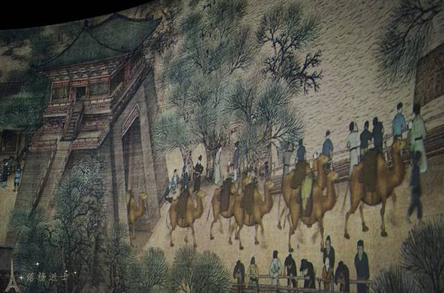 骆驼也缓缓的向舞台中央走来,这一,这一幕,表现了万国来朝的盛景和皇家的奢华。