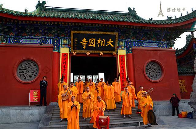 这里作为中国开封清明文化节的一个重要组成部分,大相国寺梵乐从3月28日到4月14日,在寺庙门口会对外开放演出。