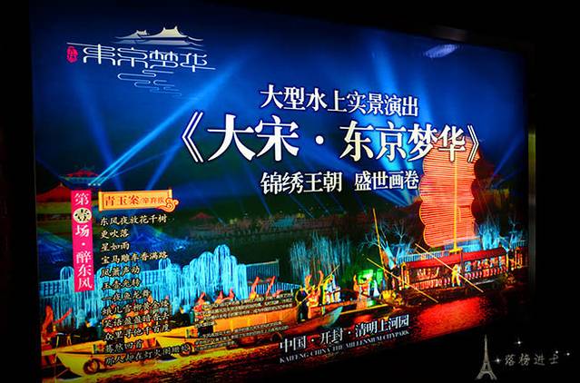 《大宋.东京梦华》是由清明上河园景区投资 1.35亿元的大型水上实景演出,全剧共70分钟,由700多名演员参与演出,是中国实景演出的又一力作。整个实景演出运用大量的科技元素,制造出梦幻般的意境,把人们的思绪拉回千年前的繁华的大宋帝国。八阙经典宋词和一幅《清明上河图》串联的画面,将精心选择的北宋印象包含进去,以唤起一个民族对兴衰的思考和渴望崛起的激情。演出是在每晚的8点开始,票价高低不等,喜欢中国古典文化的朋友一定不要错过,整个表演相当精彩,让人陶醉其中。