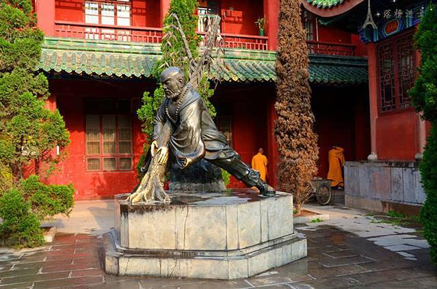 一进入寺门就能看到鲁智深倒拔垂杨柳的铜像,在水浒传中,花和尚鲁智深在大相国寺里大显身手,倒拔垂杨柳,收服了菜园里面的众泼皮。林冲的老婆张氏也是在大相国寺的庙会上被花花太岁高俅的养子高衙内看上,而后就使诈陷害了林冲,直到彻底把林冲逼上梁山。
