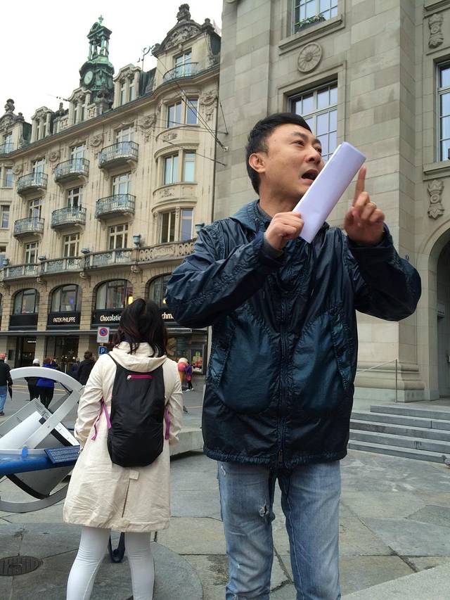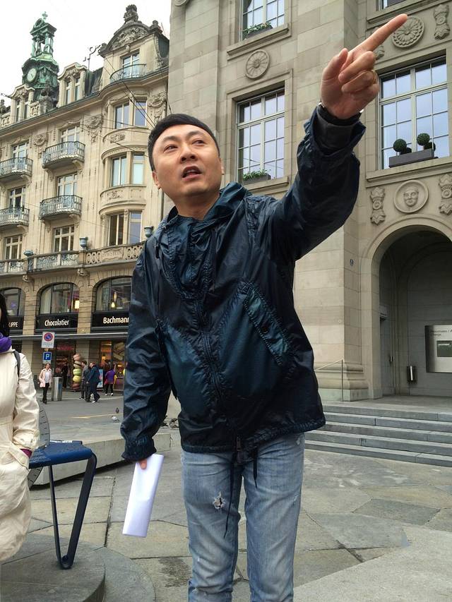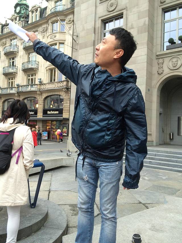 导游的姿势像不像列宁,嘴里说的是;‘如果你想买梅花表,就要往哪个方向走’。