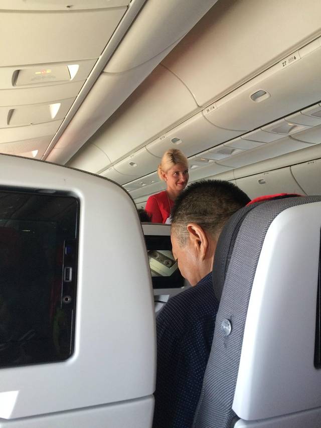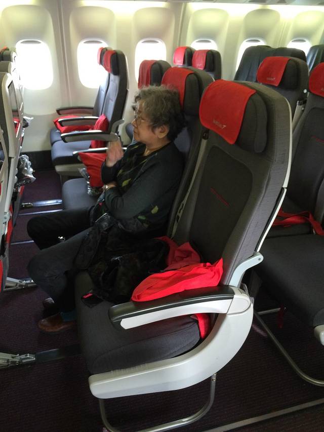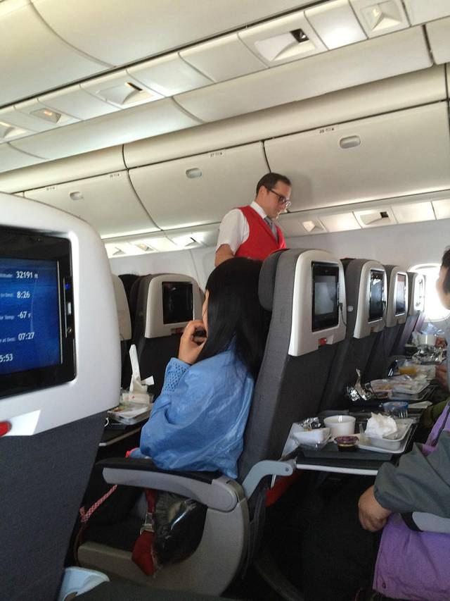 终于又上了飞机,后5排很空,同屋姐姐占了个三人座,好睡觉。