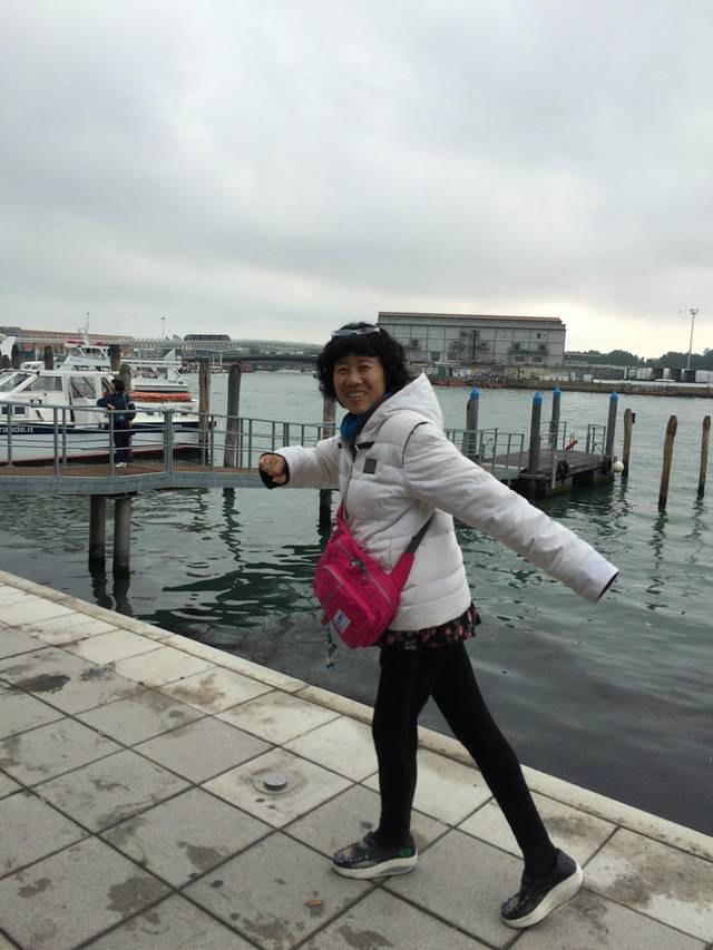 吸取正面照罗圈腿的教训,这个姿势到了威尼斯水城。